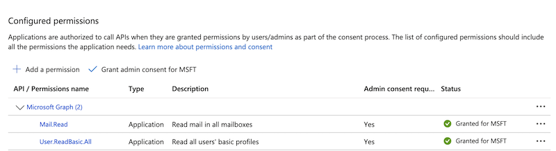 Grant the following application type permissions: